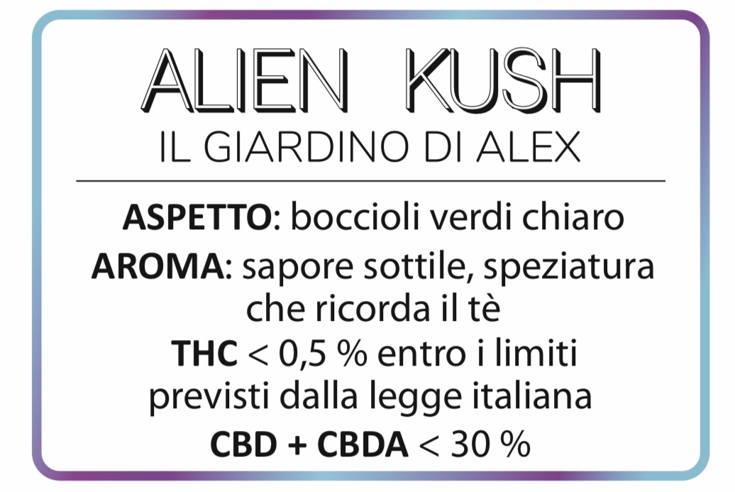 I fiori di cannabis legale Alien Kush hanno un aroma dolce, di caramello, vellutato e avvolgente al palato.